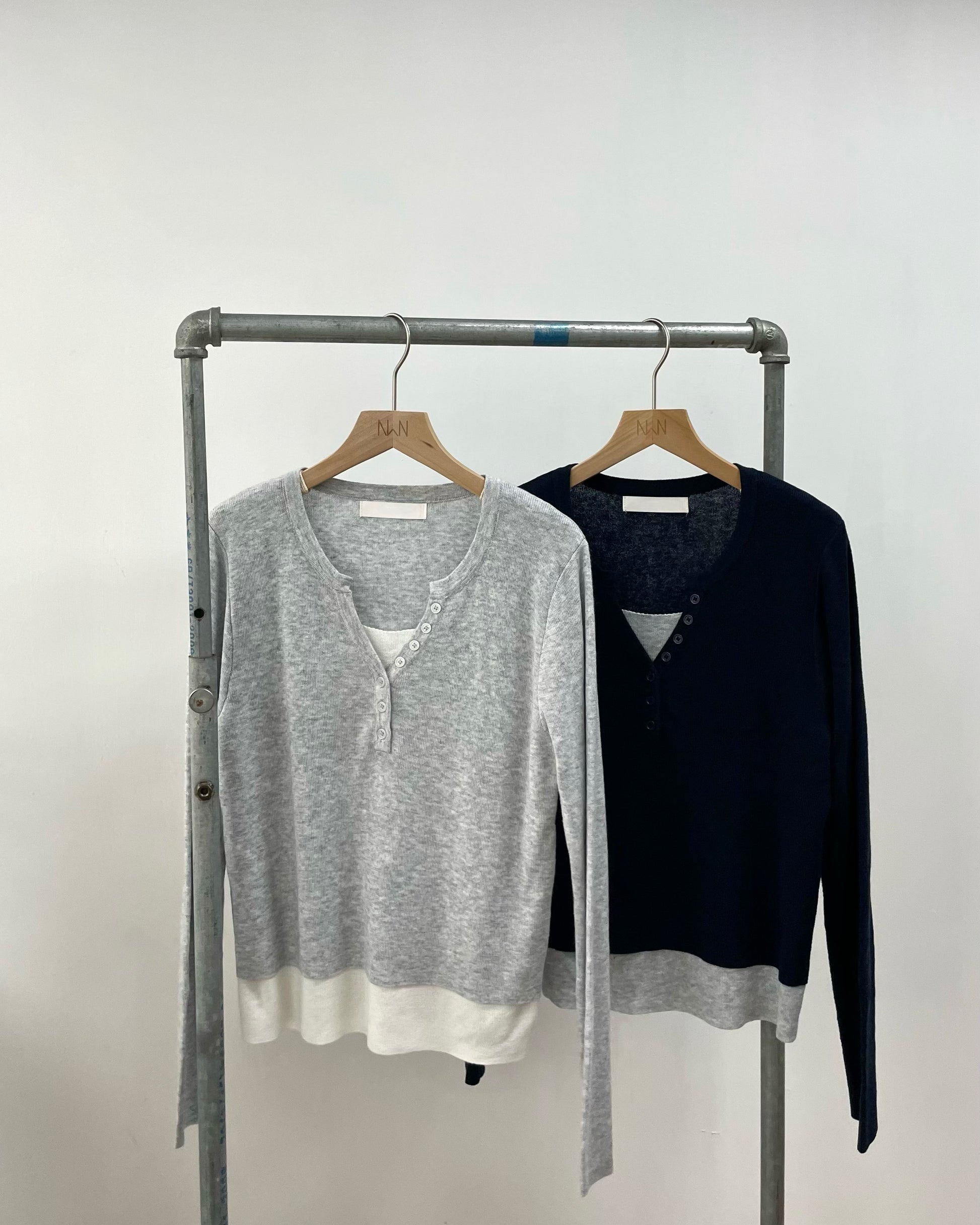 假兩件線長袖Top 數量增加