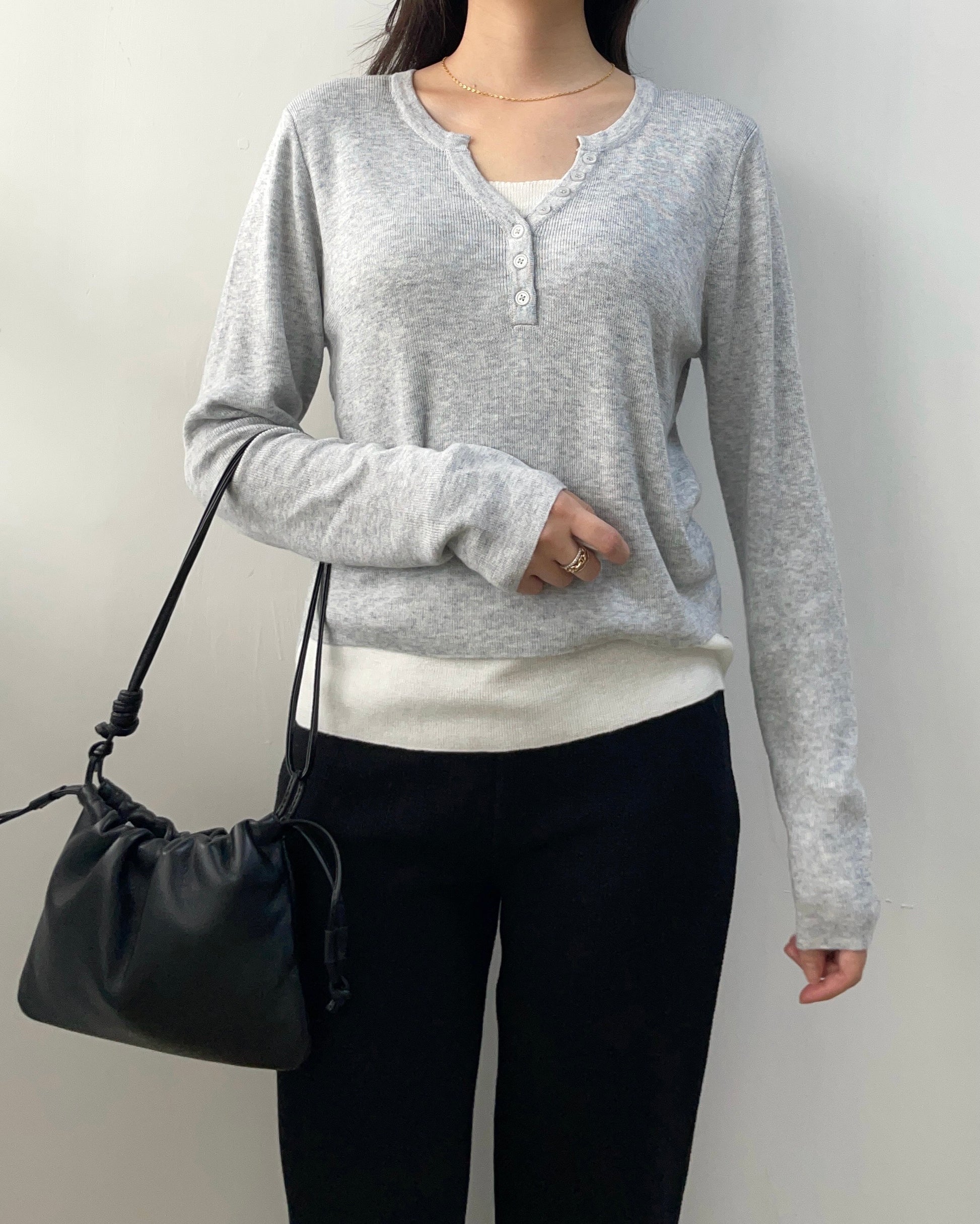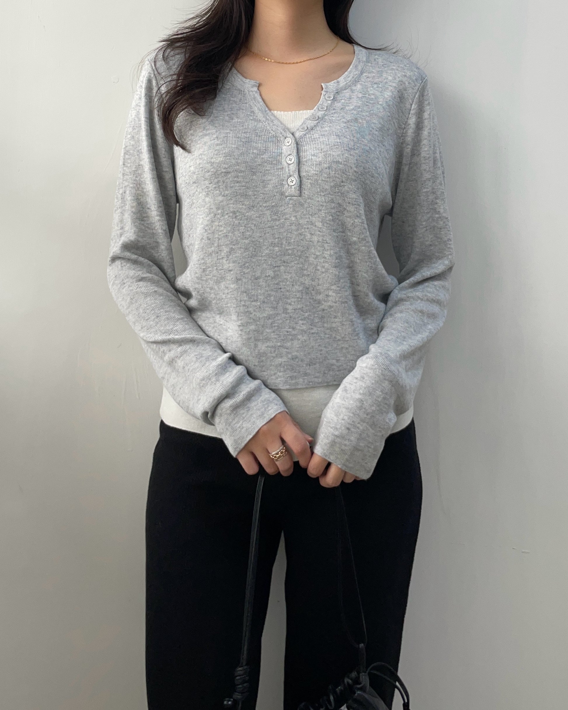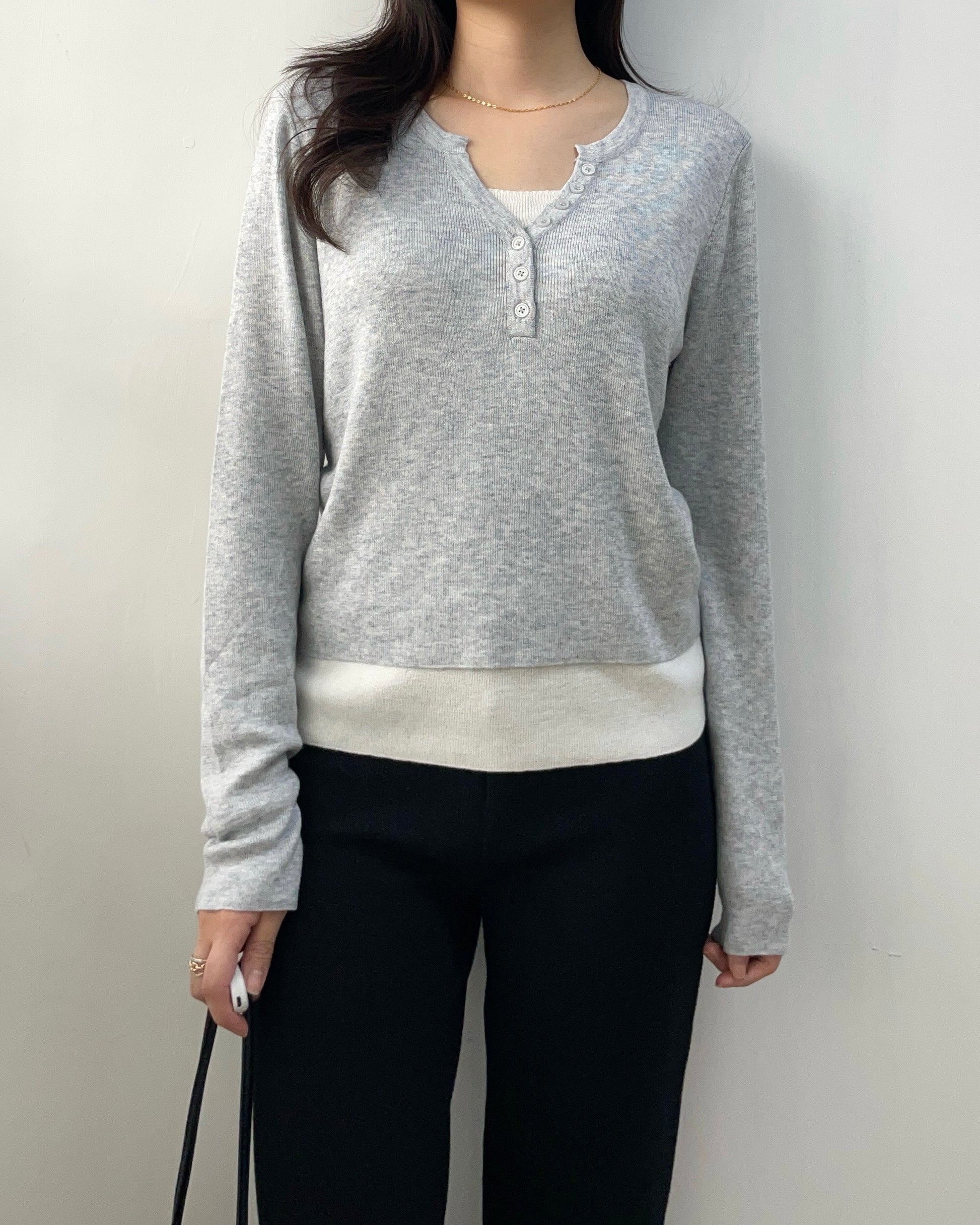假兩件線長袖Top 數量減少